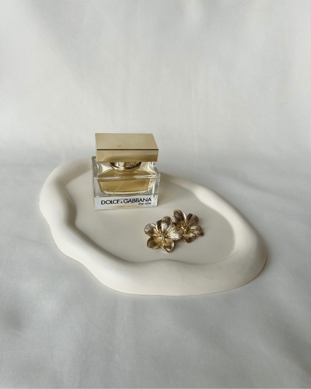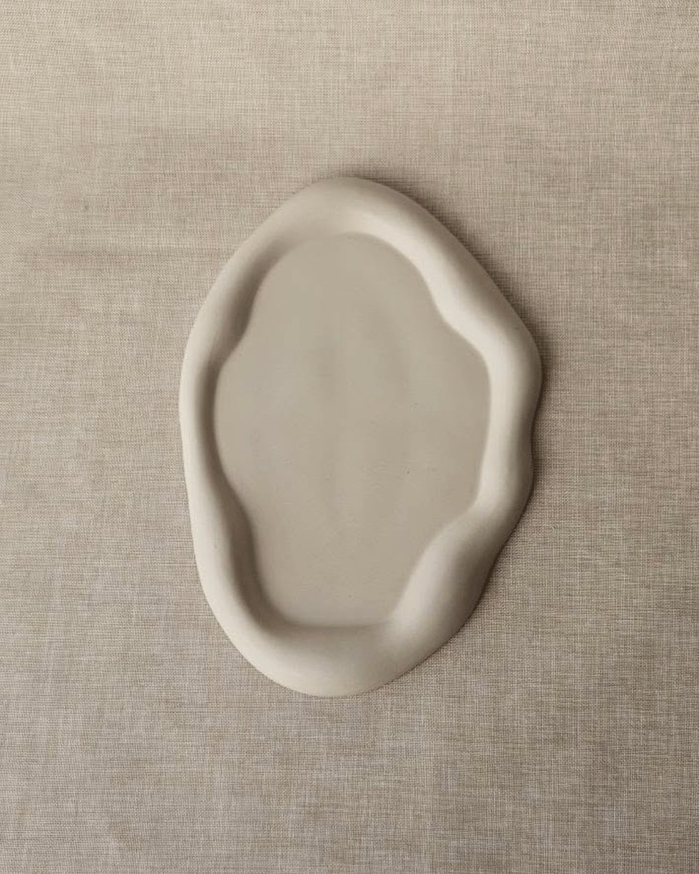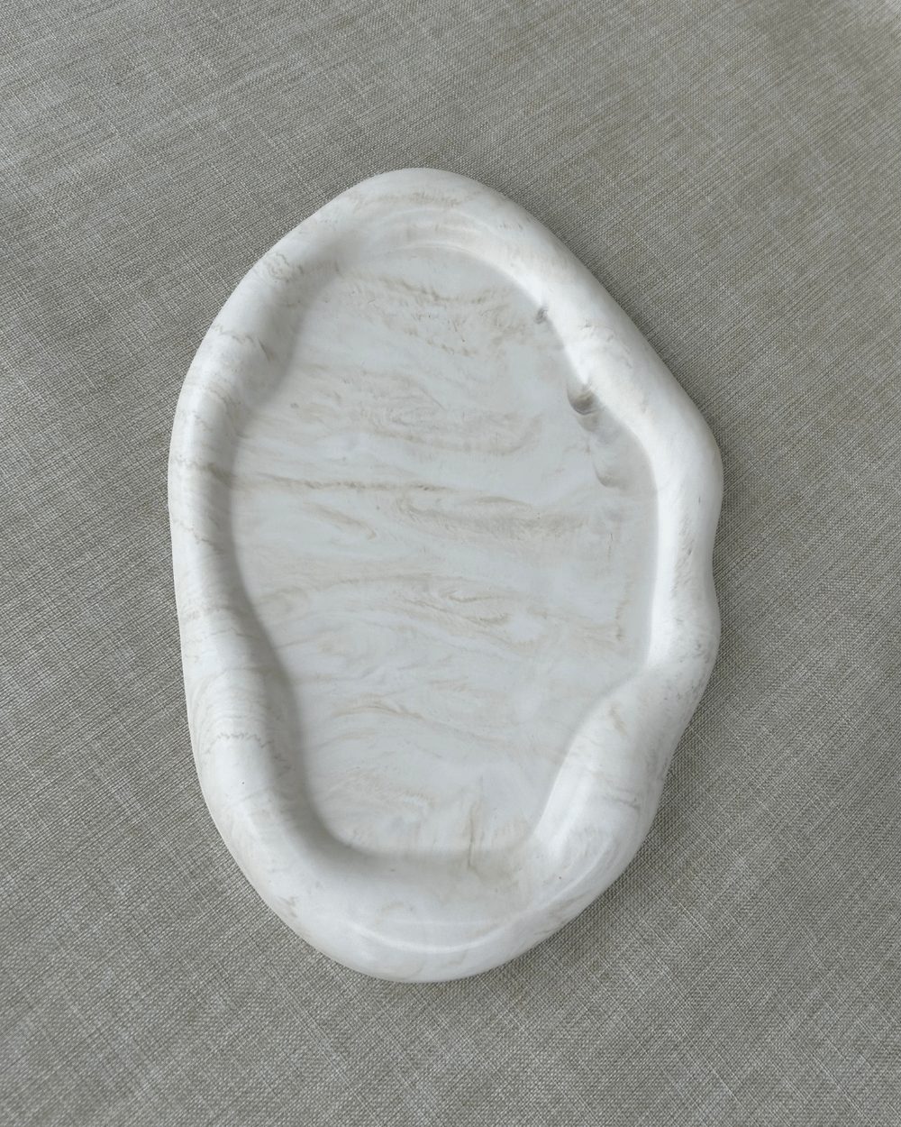 Plateau tendance en jesmonite. Moderne et fait main, idéal pour organiser et mettre en valeur vos bijoux ou tout autre objet avec style.