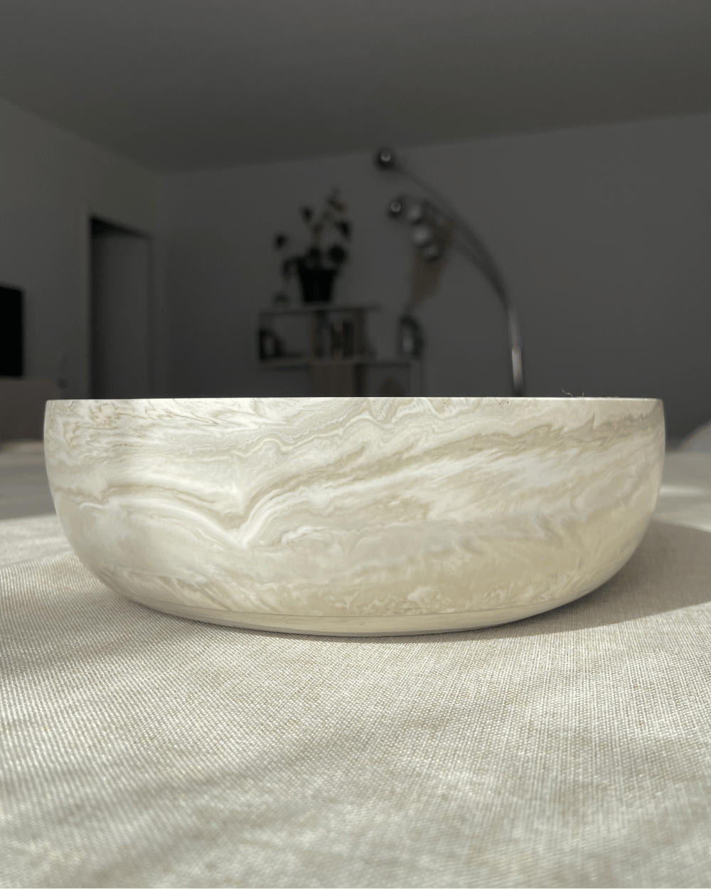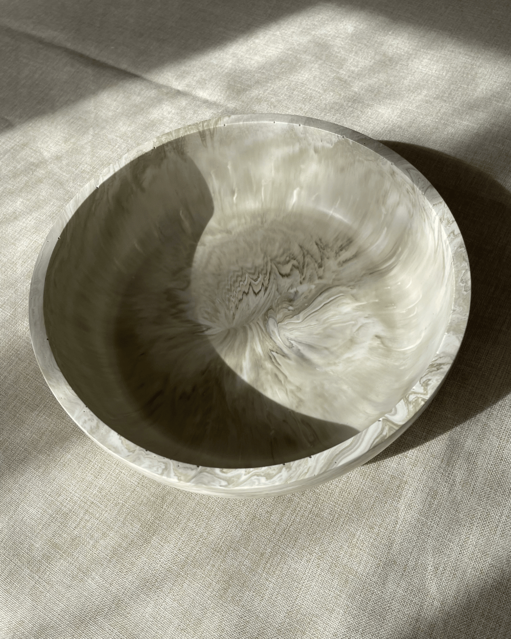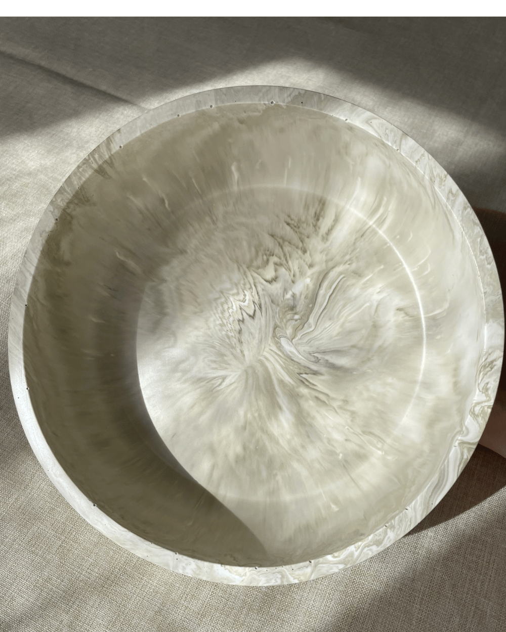 Grand bol universel en jesmonite. Solide et design, ce plateau fait main est parfait pour présenter vos fruits avec style sur la table ou pour servir de centre de table.