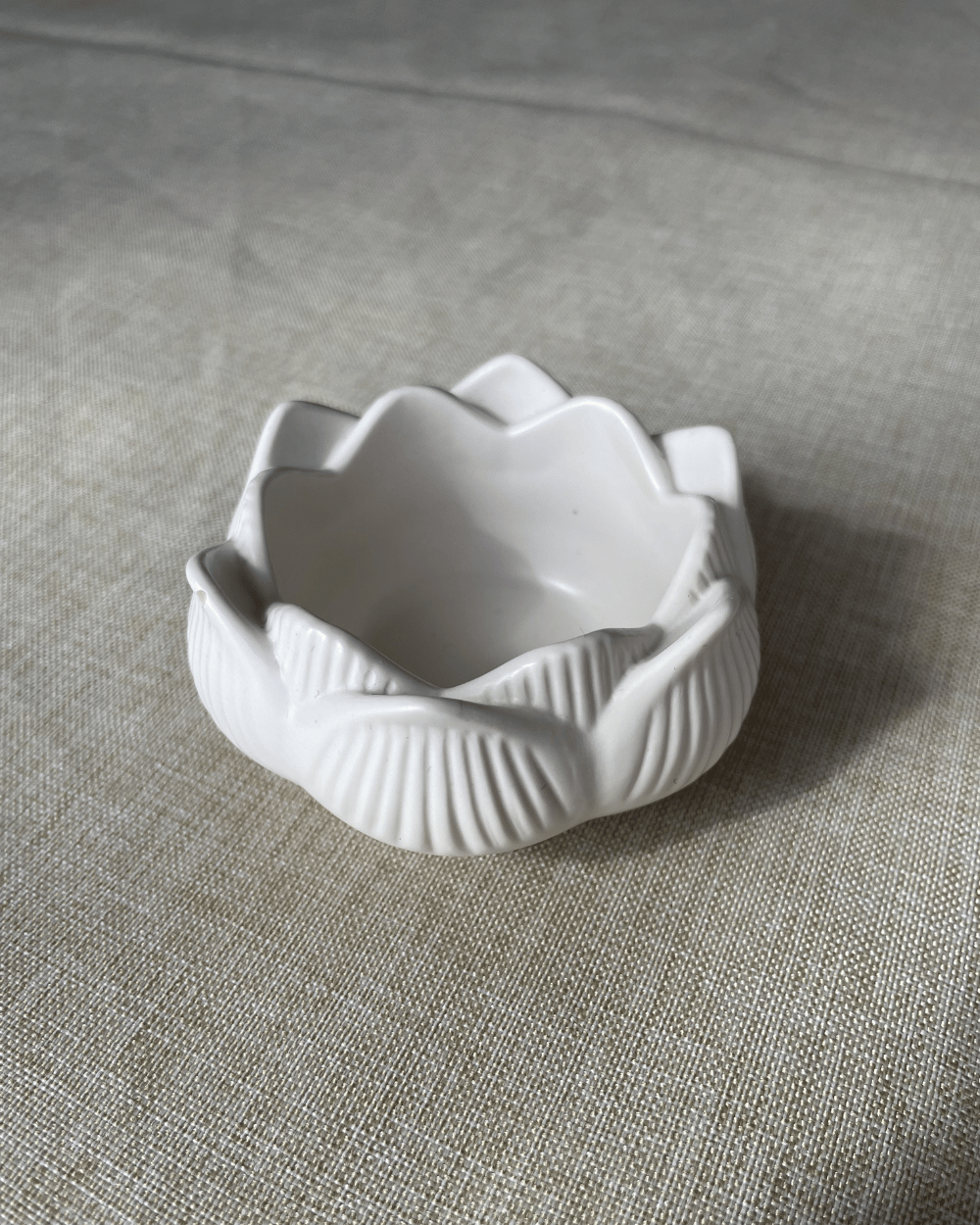 Petit pot en forme de rose fait main en jesmonite. Ce pot en forme de rose est idéal pour décorer ou ranger de petits objets avec élégance.