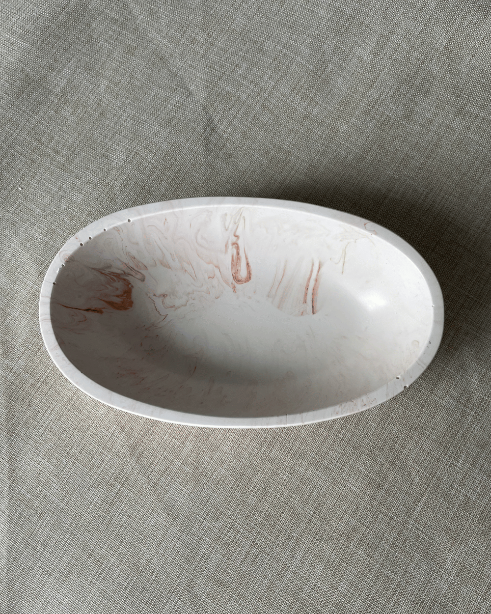 Vide-poche galet en jesmonite. Avec sa forme douce et organique, ce vide-poche fait main ajoute une touche zen à votre intérieur.